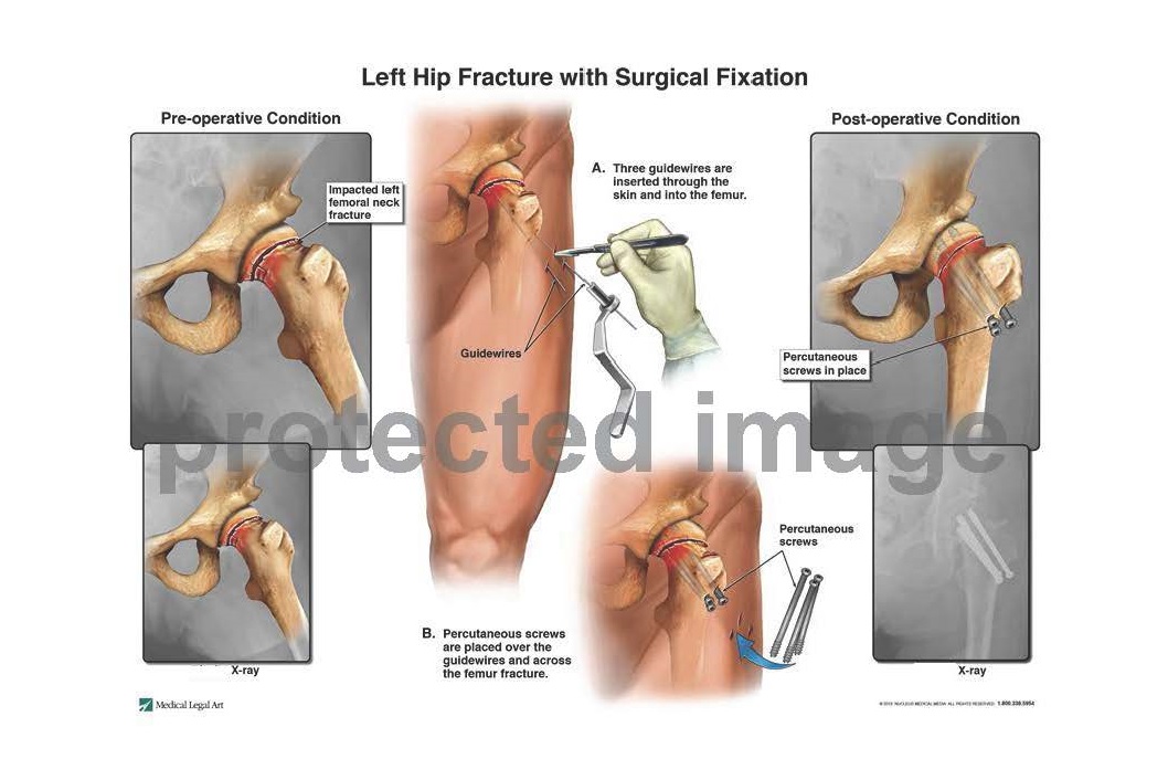 As a result of the fall, the patient sustained an impacted left hip fracture. The patient required hospitalization and surgical fixation of the fracture.