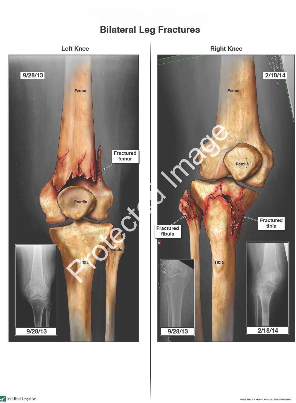 The patient continued to complain of pain in both legs, for which she required Morphine, Percocet, and Dilaudid. On February 18, 2014, in response to the patient’s persistent complaints of severe pain in her right knee, mobile x-rays were done that revealed an ongoing angulated fracture of the right proximal tibia and fibula.