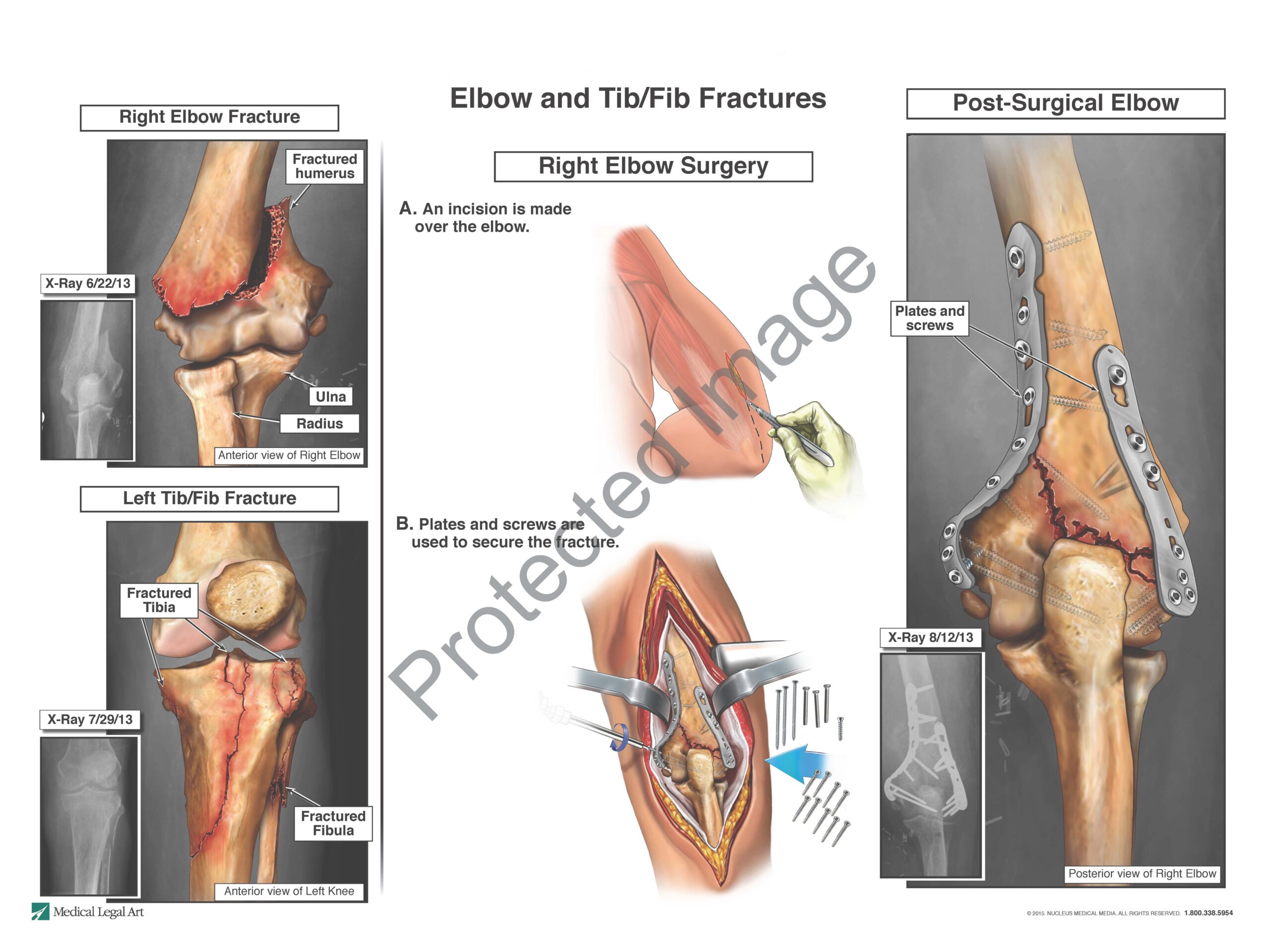 The patient was returned to the hospital on July 2, 2013, after which he was cleared for surgical repair of his right humeral fracture. The patient received an open reduction and internal fixation of right humeral fracture on July 11, 2013. His post-op course was complicated by hypovolemic shock and respiratory failure which required a BiPAP. He was returned to the nursing home on July 14, 2013.